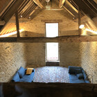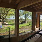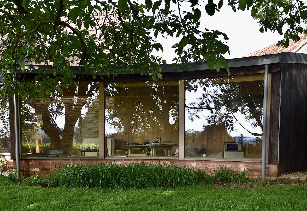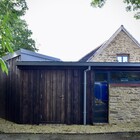 A collapsing barn and a dilapidated corrugated steel shed were the unpromising starting points for this conversion and extension to a self-contained garden annex for an artist. The site enjoys stunning views across hills to the Westbury White Horse. The artists studio extension was conceived as a curve to focus on a mature Walnut tree, without compromising the roots. The result is a cosy, super-insulated residence, with the beautifully renovated and repaired barn; a giant party space, complete with automated movie screen and minstrels gallery over.