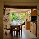 Following a flood this Listed Barn was extended to provide a better connection to the formal garden as part of flood resilience measures. It creates uninterrupted views using an internal oak frame with glass to glass corners.