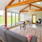 The pavilion uses rubble stone and cedar walls with a re-used clay tiled roof. This harmoniously co-exists with the main listed house (a previous project), while creating a distinct and appropriate modern pavilion. A south facing roof lantern lights the north facing music room throughout the day.