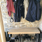 By introducing a simple flat roof and glass wall panels, the space was enclosed to make a lobby large enough to remove boots, with a fitted bench and coat hooks that minimised the clutter. The whole house benefitted from this little glass enclosure, especially the now comfortable and clutter free hallway!