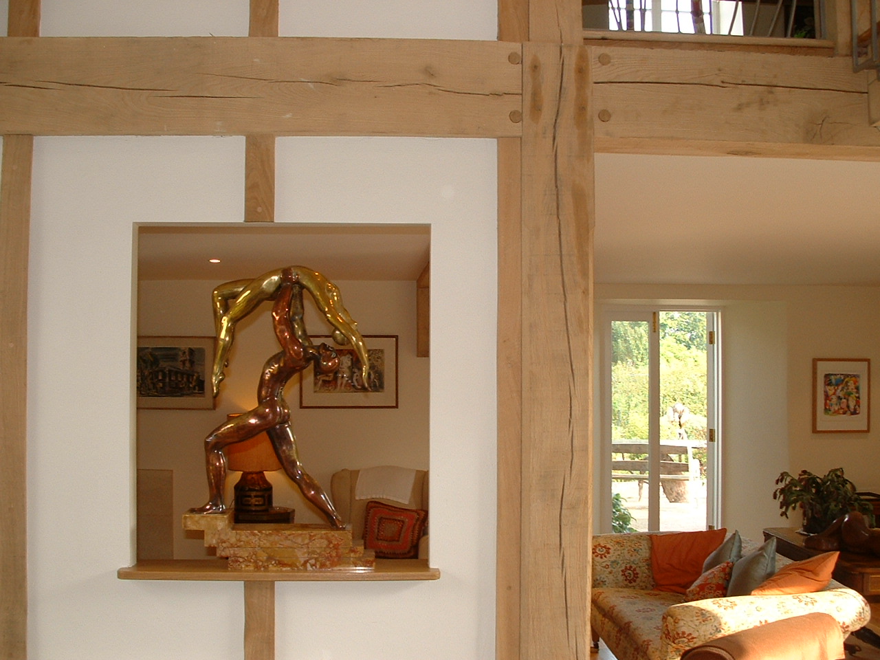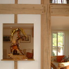Restoration of a milking parlour and barn to a guest suite and principal living area. Passive Solar heating with shading using the barn doors and recovered flagstones together with super-insulation gives comfortable year round occupation.