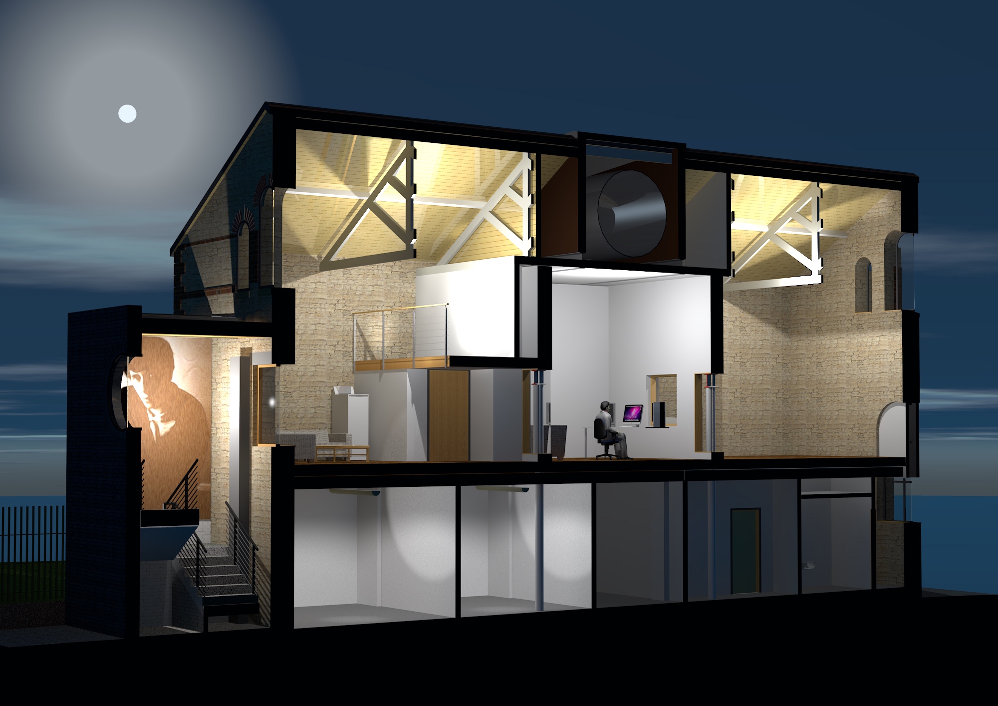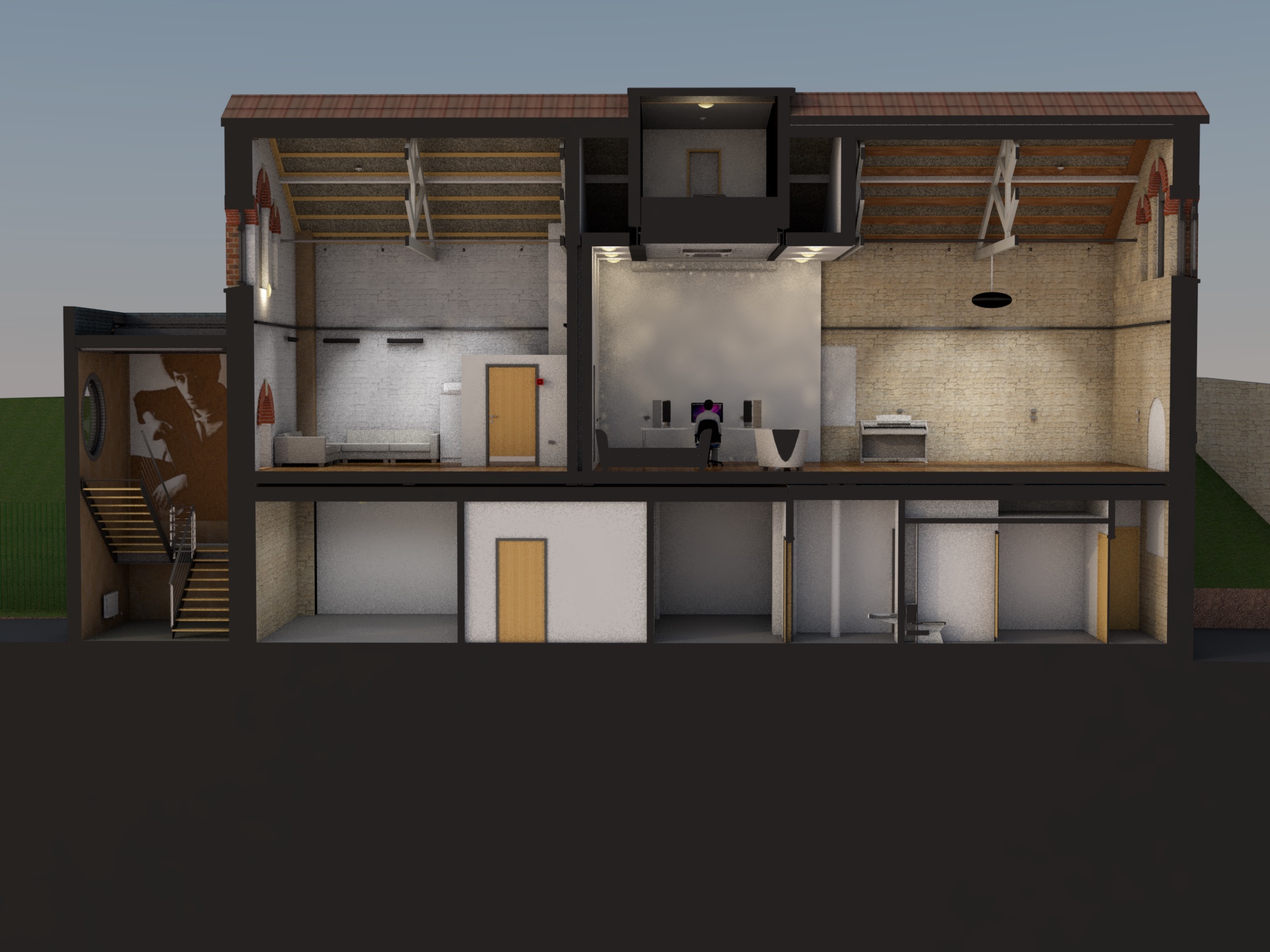 The project was partly sponsored by the Bert Jansch Foundation to provide space for rehearsal & recording for professional musicians, recording artists and the local community. The acoustic qualities and design of the studio exceeded the most optimistic expectations and has a growing reputation among top artists including Sir Tom Jones who recently recorded his new album here.