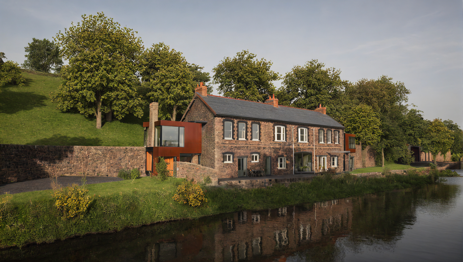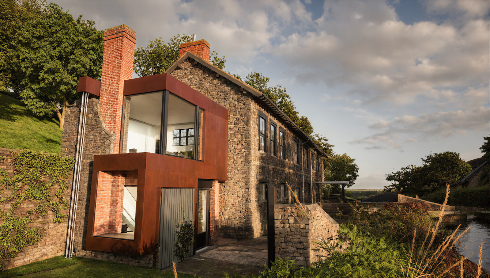 This project rescued and converted a roof-less grade II listed ruin, gutted by fire over twenty years earlier. The site is part of a Scheduled Ancient Monument of Iron works within the flood plain, home to a colony of rare Horseshoe Bats and the even rarer 'Somerset Cap' plant. Despite the complex planning hurdles and practical difficulties presented by the site, our design united Natural England, Historic England, Environment Agency and local Council in fully supporting the scheme.