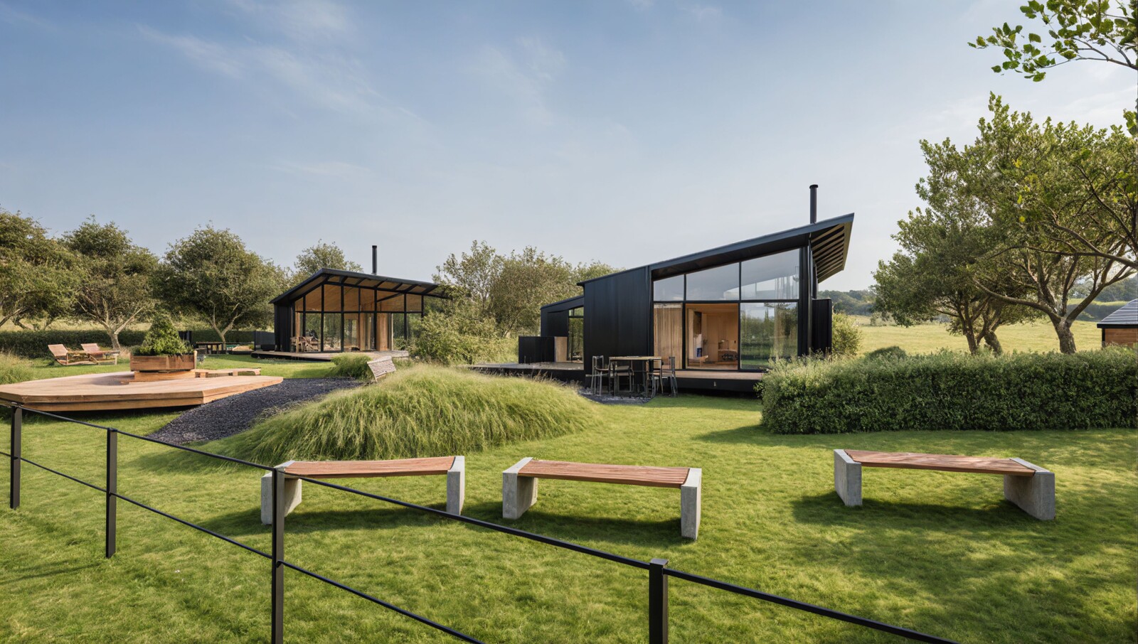 A pair of low-impact holiday lets set in a reptile & insect-friendly landscape. A former car park with field views provides a setting for an ecological experience in straw bale cabins.
