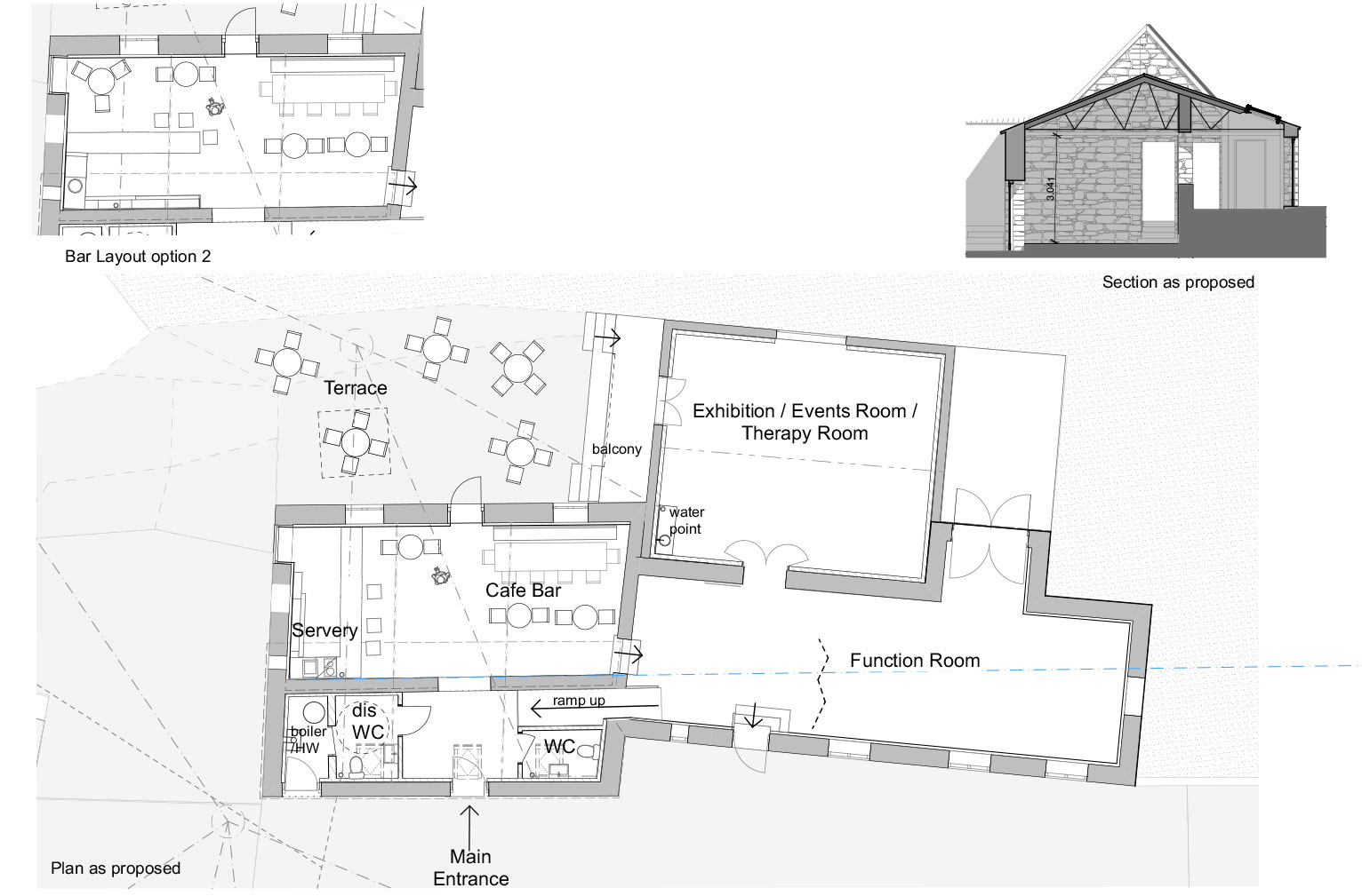 We investigated a mixed-use for the site, with glamping (via license), community spaces, offices to rent, a museum & restoration of all the original farm buildings. The long term plan was for a rural retreat. These proposals would provide a flexibility of uses to allow the business to grow & change.