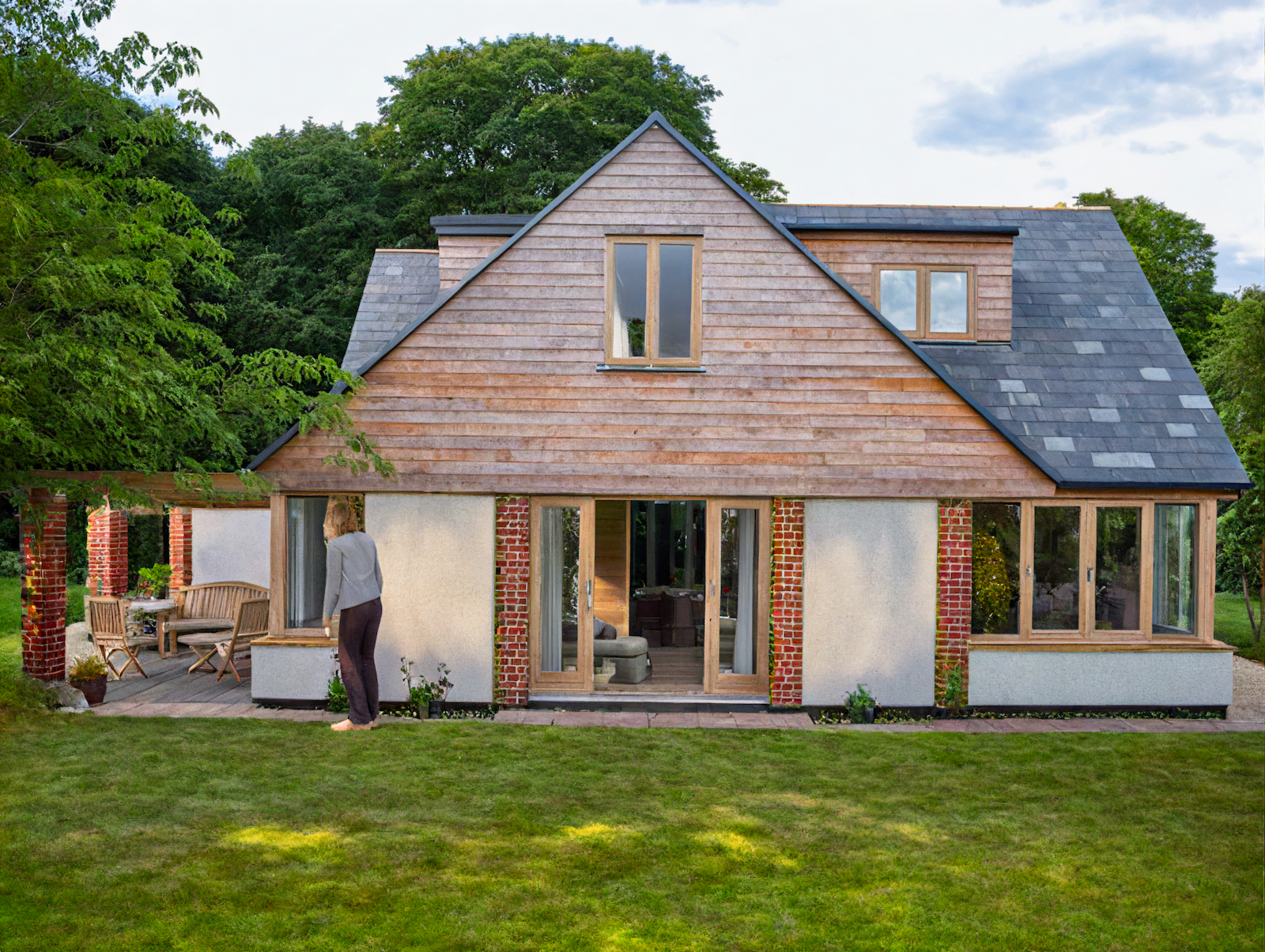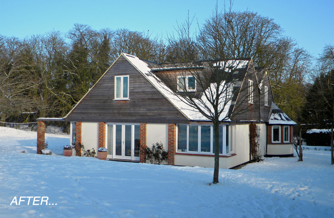 This grew from a 1950’s farmworker’s bungalow to a comfortable 5 bedroom house. It now benefits from a ground source heat pump supplying ample hot water and heating. The new family room which links with the garden comfortably hosted 24 for Christmas dinner.