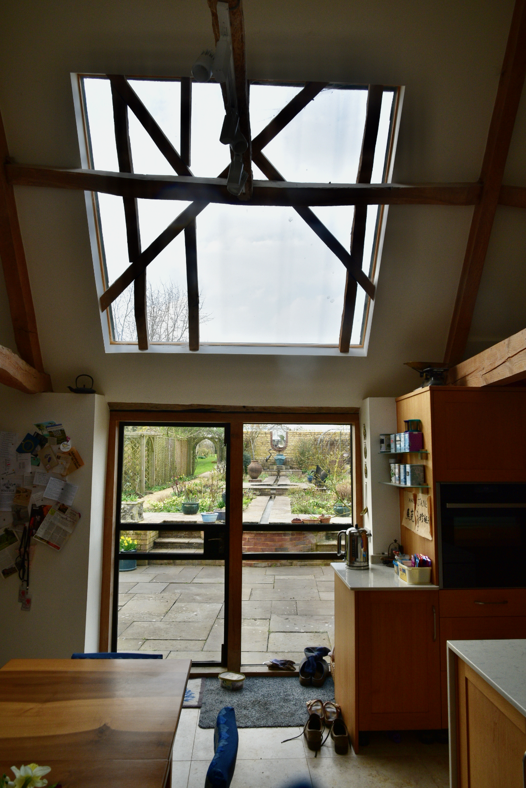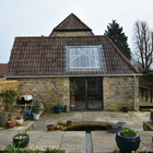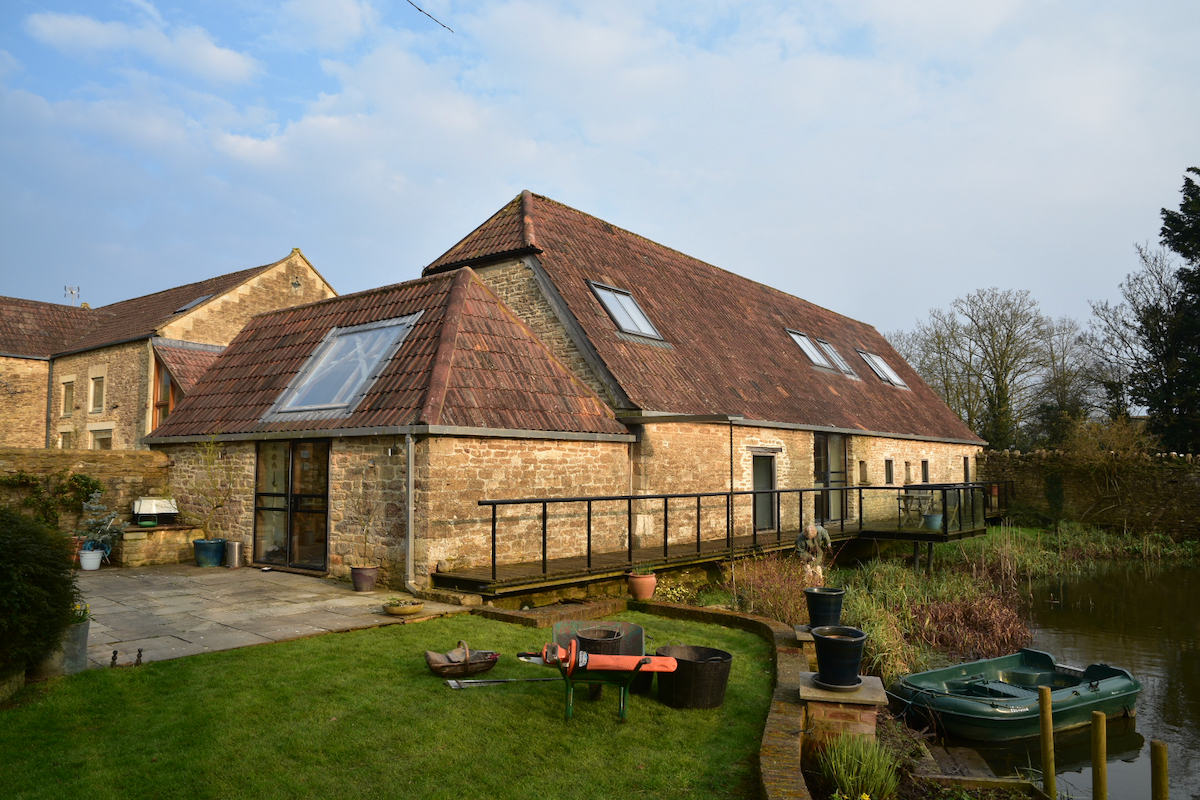 Following a flood this Listed Barn was extended to provide a better connection to the formal garden as part of flood resilience measures. It creates uninterrupted views using an internal oak frame with glass to glass corners.