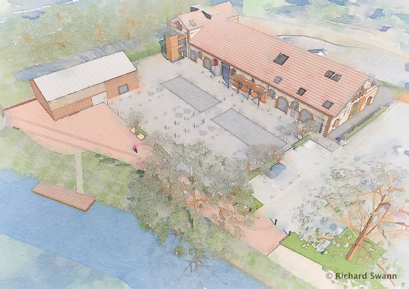 The proposals build on the success of previous projects with the Cheese & Grain and our earlier proposals for the wider regeneration to create a Riverside Place and Black Swan Square . We were commissioned to develop a concept for providing new rehearsal space and post-production editing suites to complement the Bert Jansch recording Studio. The site is located at the back of an unpromising public car park, backing onto a live mineral railway. We developed a contextual design that connects the building visually with the Cheese and Grain and provides an additional entrance for the venue. With detailed Planning permission achieved, Event Tec are now looking forward to completing the technical design.