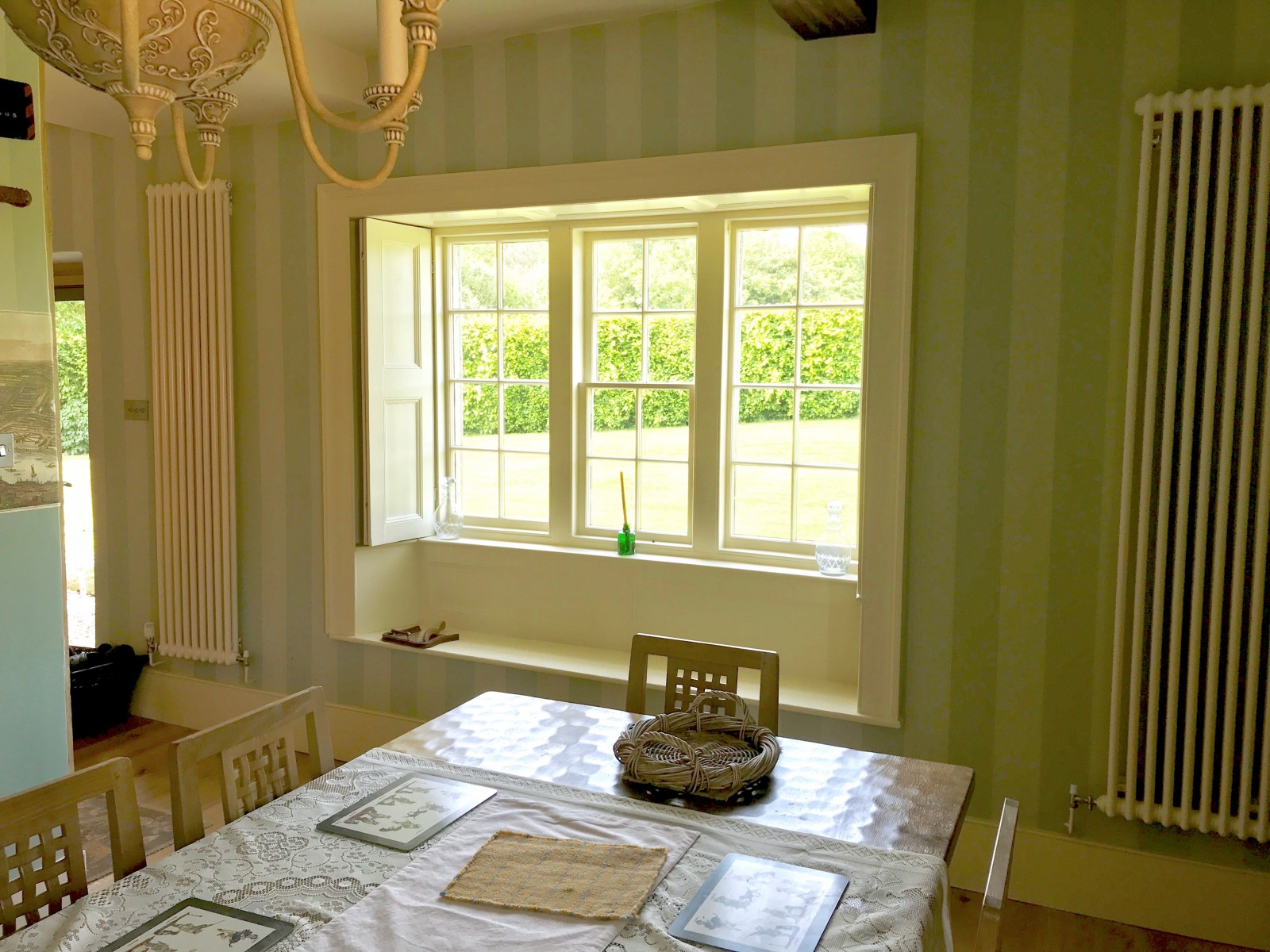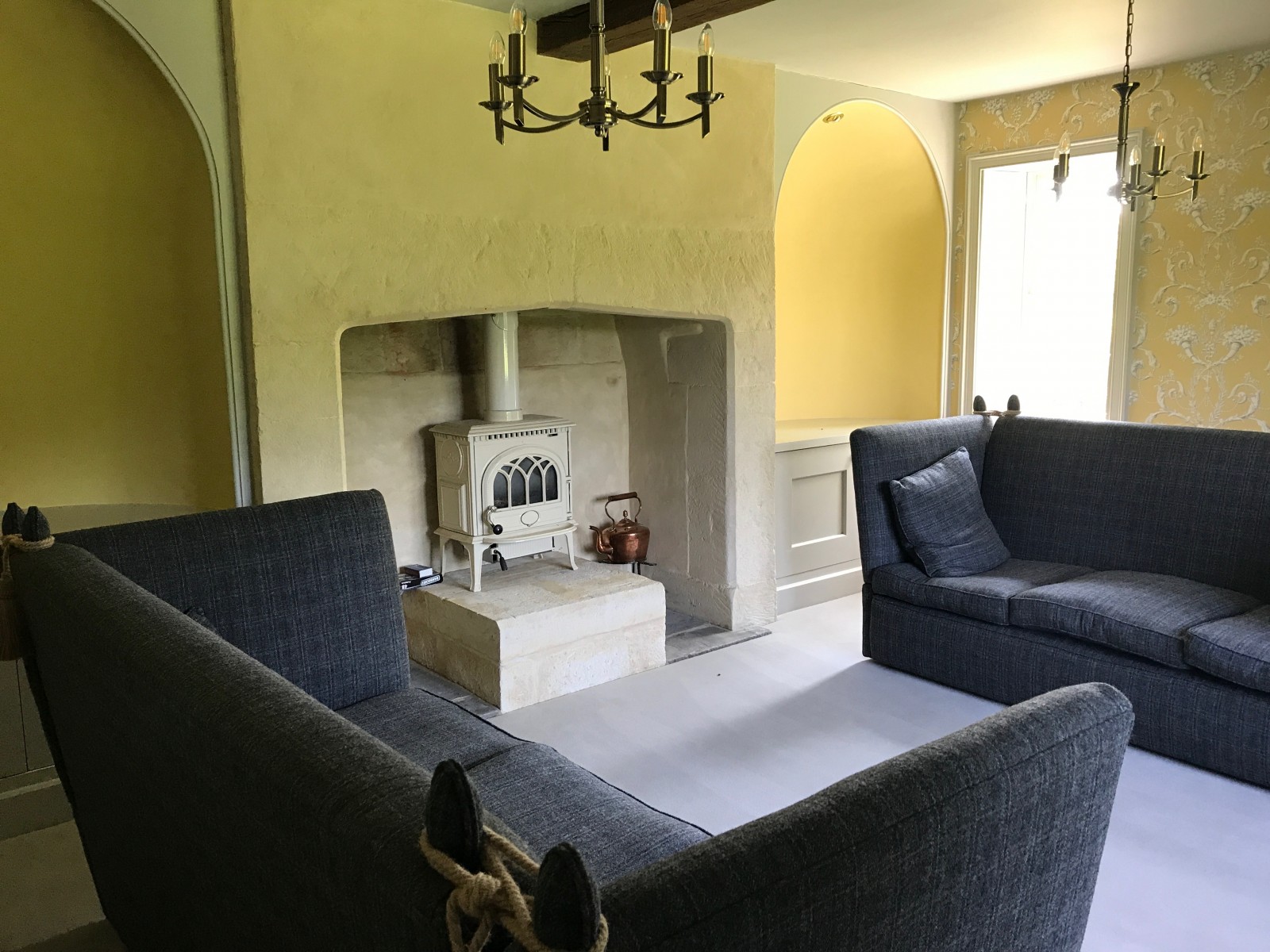 Manor Farm is a delightful Listed 18th Century 'model' farm on the site of and incorporating remnants of a former Manor. The buildings and grounds are currently undergoing major refurbishment and alterations in close liaison with the conservation officer. Sensitive stonework repair has been undertaken by specialist masons. All the roofs were stripped, repaired and retiled; the lean-to loggia and dovecot were extensively repaired and re-roofed with stone slates, the original material. Replacement and additional bespoke metal framed leaded light casements have been installed in Daulting stone or Oak surrounds . All the services were completely renewed throughout the house, with new bathrooms and kitchen have been sensitively incorporated.