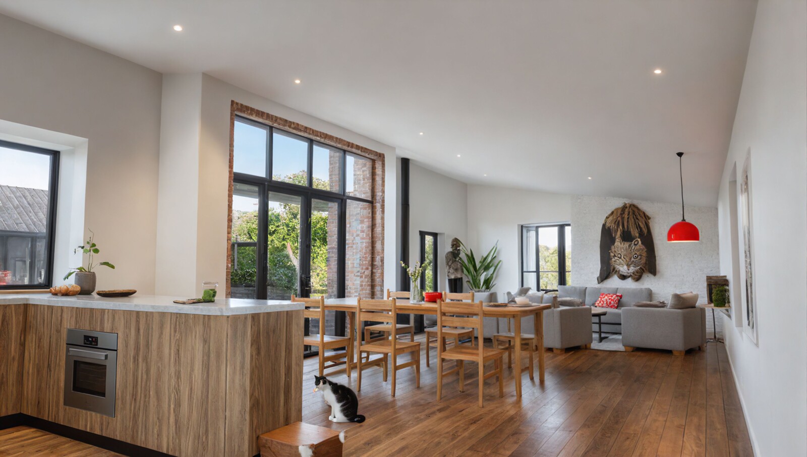 A pair of outbuildings commanding a run-down courtyard, in idyllic farmland with an adjacent river. Our client wanted to create a pair of low-impact homes for two families. The barns are in sound condition but with some design challenges. Consent was achieved and this project is due to commence in 2021.